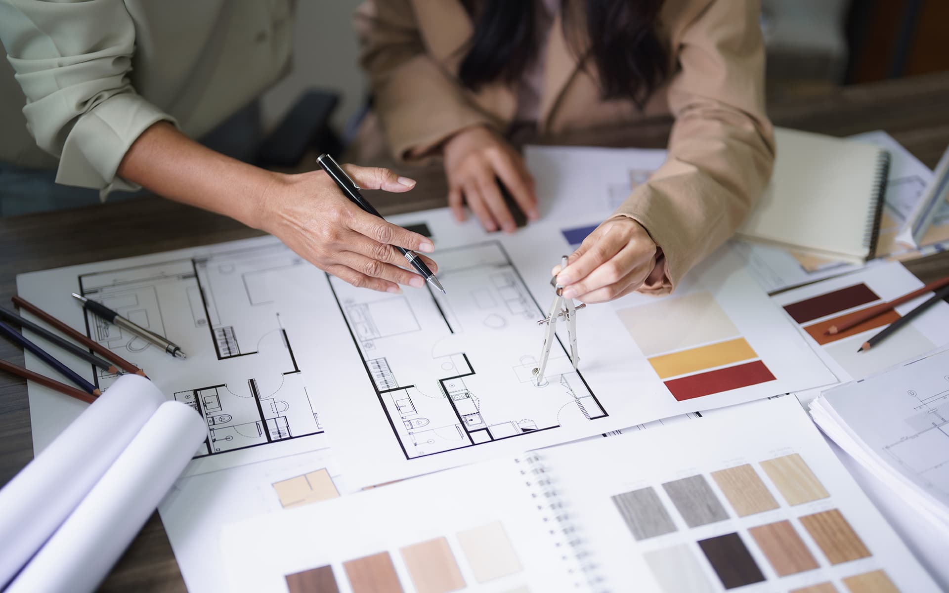 工事の進み具合のチェックから、図面通りにできているかの管理まで、設計から施工まで一貫して私たちが責任をもって担当します。専門的で複雑な部分も、安心してお任せください。